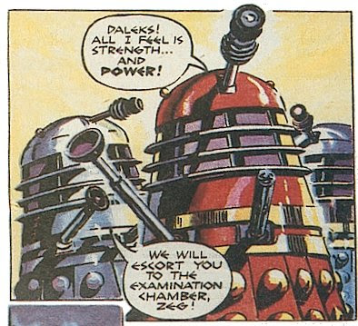 Aside from bringing a more manipulative streak to the Daleks, Whitaker also made them more human as well. Nation had made the monsters completely alien as we explored in the last article. Whitaker however brought more human qualities to them. For instance in the tv Century 21 comics he gave a Dalek a name “Zeg”. Zeg also had an individual personality too. He wanted to take control of the Dalek empire away from the Emperor. This marked the first time a Dalek was shown to have any individual desires of its own, prior to this they had all been working towards a single goal with no individuality whatsoever.