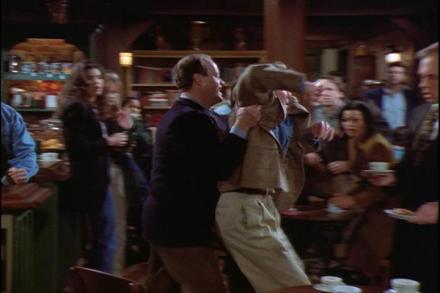 Things don’t go entirely easy for Frasier however. He suffers a number of very public humiliations. He ends up getting into a fight with a critic who slates him publicly, he ends up offending the population of Seattle many times when he says a young woman would be better off leaving and then unknowingly calls the population of the city whiny twits on air and then tells a racist joke at an award ceremony, that also unknown to Frasier mocks a recent tragic event.
